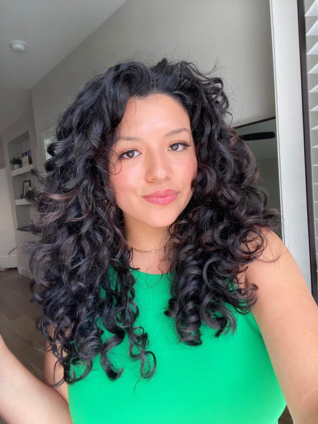 “One of my favorite hair products is the deep conditioner from Rizos Curls. I have found that it moisturizes my curls without weighing them down, and my hair feels so soft and luscious afterwards. Their citrus coconut scent is so refreshing and leaves me feeling ready to go. To top all of that off, they are a Latina-owned business and as a first-gen Latina immigrant myself, I love to support my community whenever it is possible.”