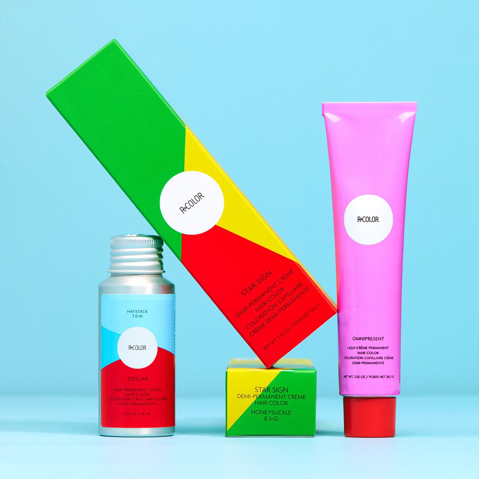 - R+COLOR Demi hair color bottle is made from 100% recycled aluminum + 60% recycled aluminum cap + 50% PCR label (biodegradable + compostable)